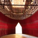 The earthbag domes are thought of as a “launching pad” that supplies the ship with the energy of Mother Earth and the upper steel building as the ship that is soaring in the sky.