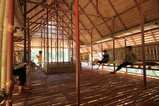 From the architect. This school aims to help alleviate poverty in Shangkhaburi village, Thailand, located near the border of Myanmar. There are a lot of immigrants and orphans in this area. They are so poor that they cannot raise their children themselves.
