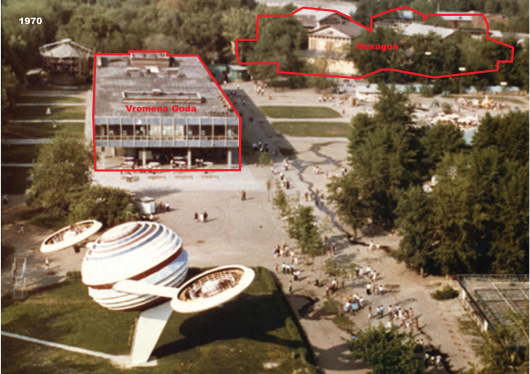 Exposed to snow, rain, and sun since it was abandoned in the 1990s, the former Vremena Goda restaurant – once a popular destination in Gorky Park – has become a ruin without facades. Even as a ruin it preserves the “collective” aura of the Soviet era: it is a sober public space adorned with tiles, mosaics and bricks.