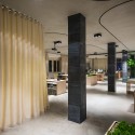 (un)curtain office is a working space with no predetermined fixed spatial partitioning. For the organisation of the working environments and spaces a system of curtains was used. That allows for countless scenarios of operation and appearance of the space. In a few seconds a meeting room with a large table for discussion can turn into a dining room with a mini library and a kitchen.
